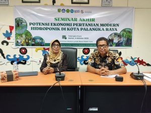 Foto Kepala Bidang Riset dan Inovasi Daerah Bapperida Kota Palangka Raya, Kurniawan S. Utama, S.T., M.T. Didampingi Dr. Hastin Ernawati Nur Chusnul Chotimah, SP., MP dari Fakultas Pertanian Universitas Palangkaraya