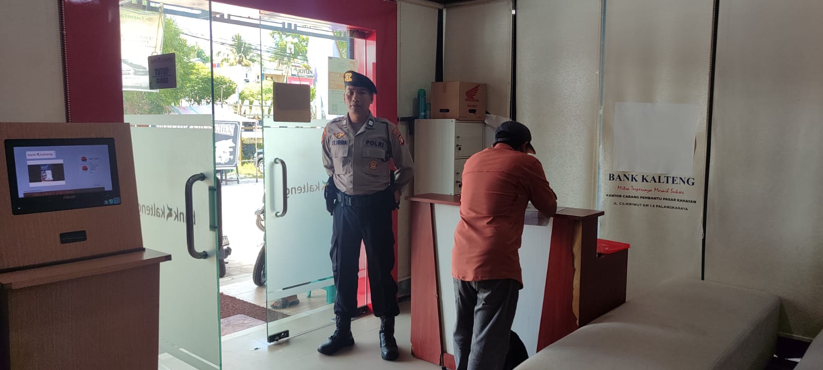 Palangka Raya – Selain memperketat pengamanan, personel Satuan Pengamanan Objek Vital (Satpamobvit) Polresta Palangka Raya turut memberikan imbauan kamtibmas kepada masyarakat yang beraktivitas di sejumlah bank, Jum’at (12/12/2025).