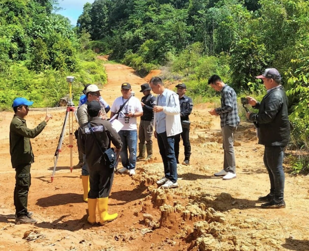 Foto Pengukuran lahan Prianto yang sengketa dengan tambang batubara di wilayah Desa Karendan dan Desa Muara Pari, Kecamatan Lahei Kabupaten Barito Utara, Provinsi Kalimantan Tengah