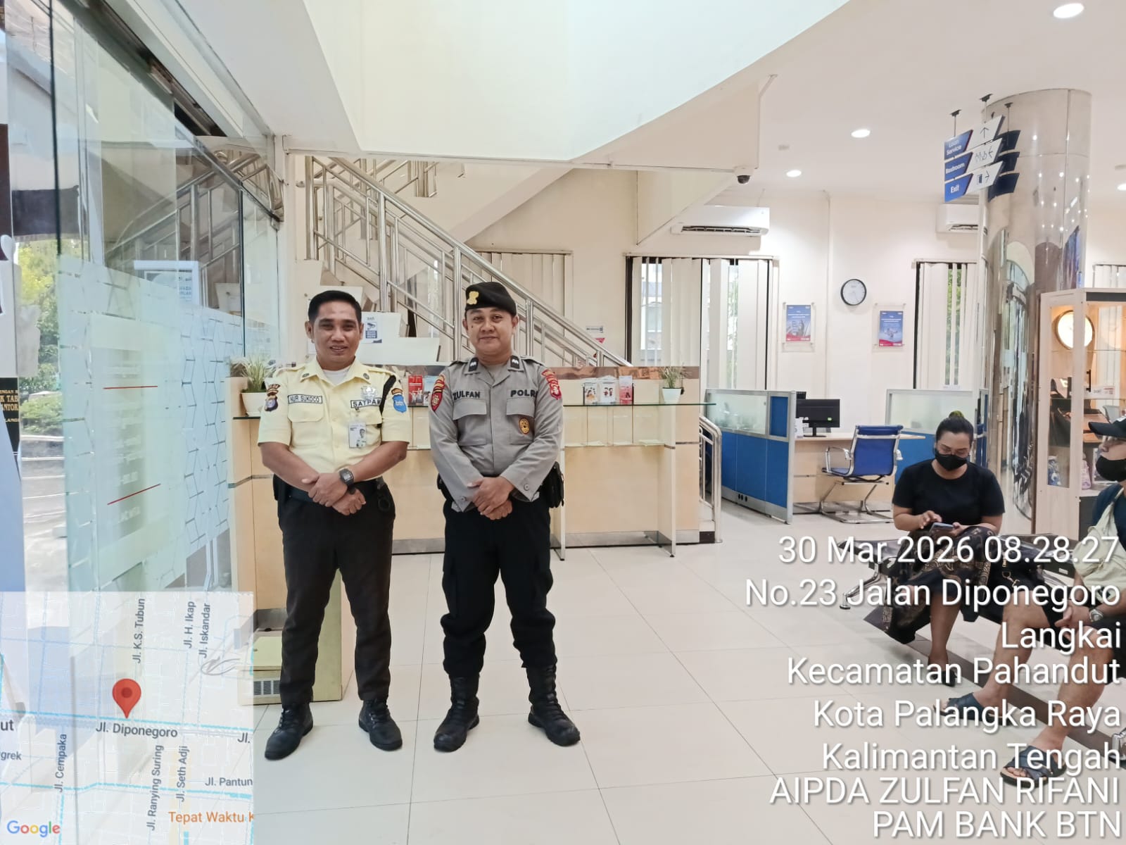 Palangka Raya – Dalam pelaksanaan tugas pengamanan objek vital perbankan, personel Satuan Pengamanan Objek Vital (Satpamobvit) Polresta Palangka Raya mengedepankan sikap humanis kepada para nasabah.