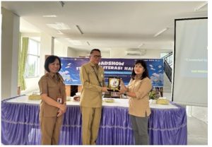 Foto penyerahan plakat sebagai wujud kolaborasi penguatan literasi di Kabupaten Gunung Mas