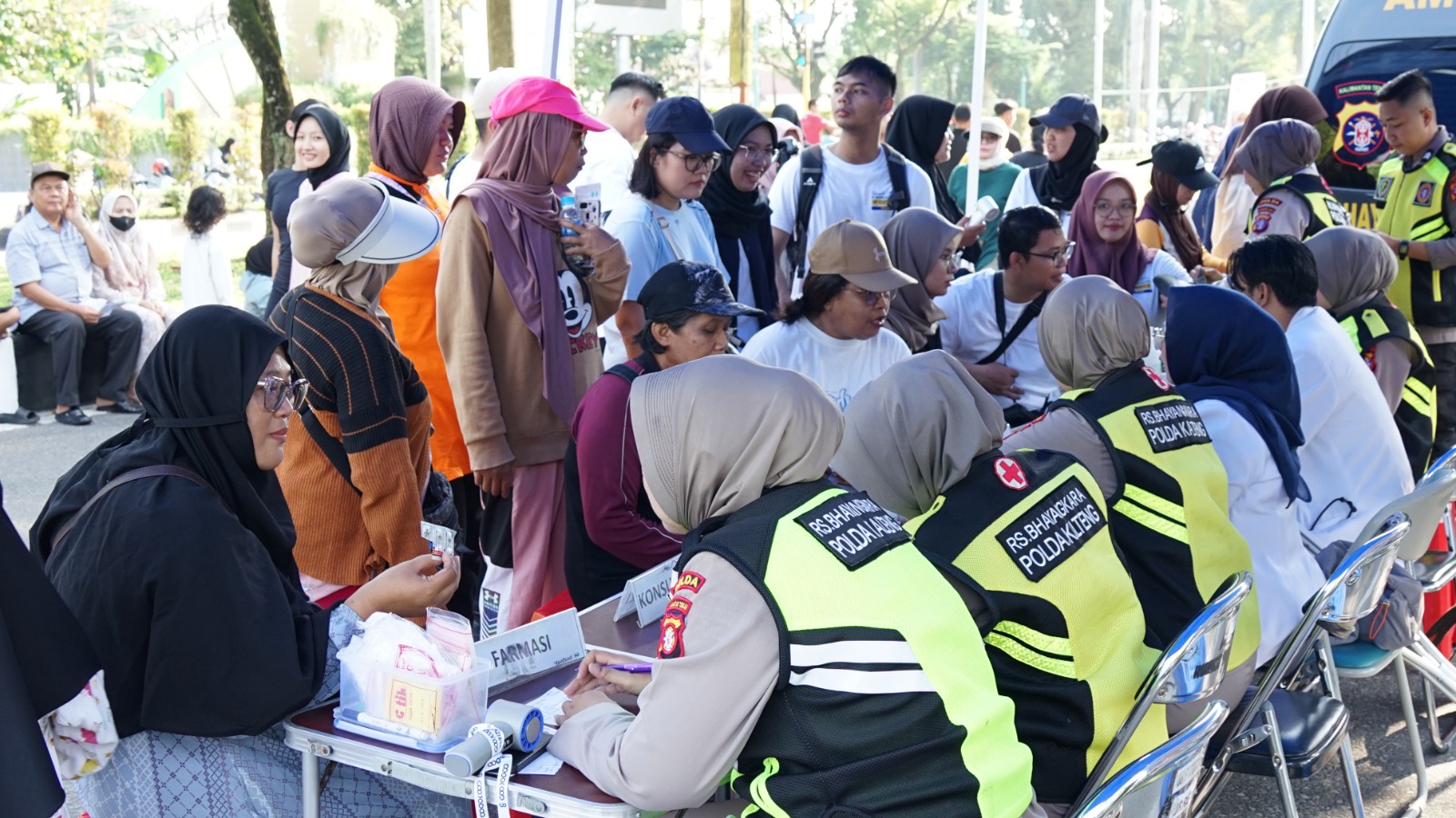 Kegiatan yang berlangsung di kawasan CFD Kota Palangka Raya tersebut menjadi salah satu bentuk nyata komitmen Rumkit Bhayangkara Polda Kalimantan Tengah dalam mendekatkan pelayanan kesehatan kepada masyarakat. Sejak pagi hari, masyarakat dari berbagai kalangan terlihat memadati stan pelayanan kesehatan yang disediakan.
